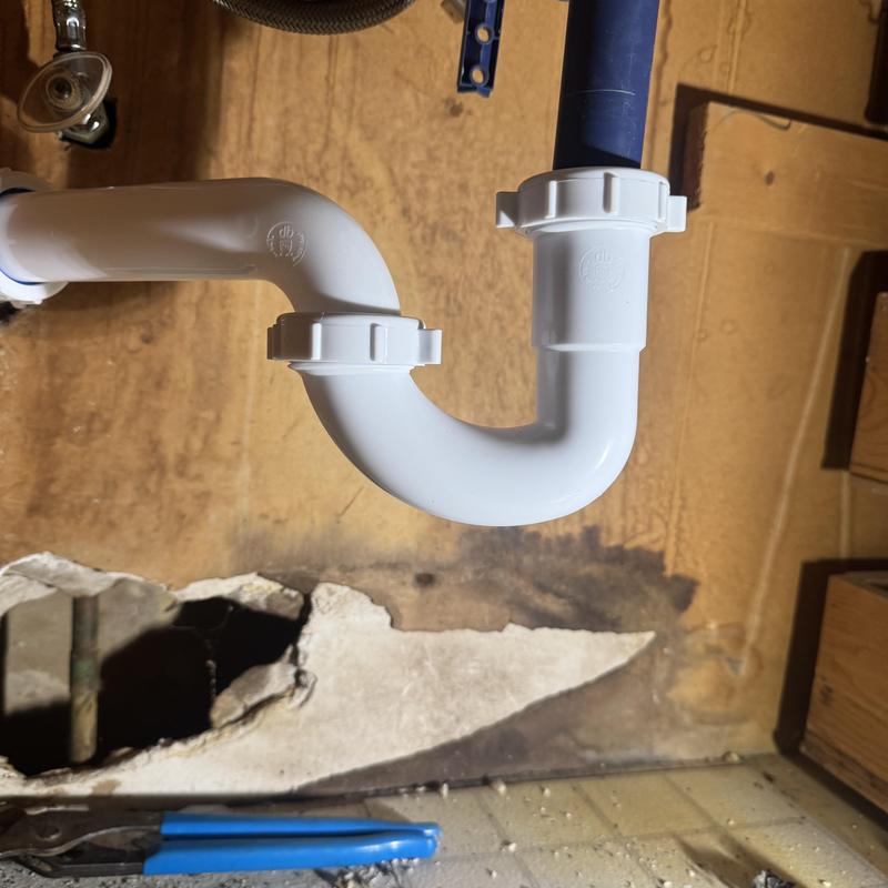 STEVE'S WATERWORKS PLUMBING replaced a damaged P-trap under a bathroom vanity in Waterford Twp, MI, restoring proper drainage and preventing water leaks during an emergency service.