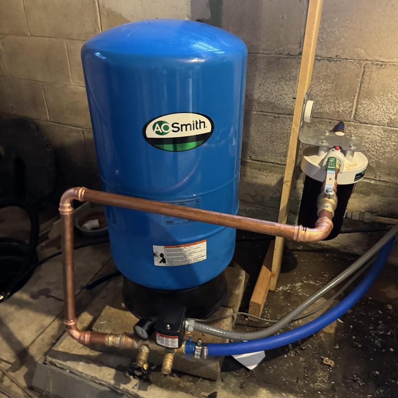 A plumber in Bloomfield Township, Michigan removed a saturated 32-gallon well bladder tank causing water pressure issues. The technician installed a new 32-gallon bladder tank to restore consistent water pressure in the home’s plumbing system.