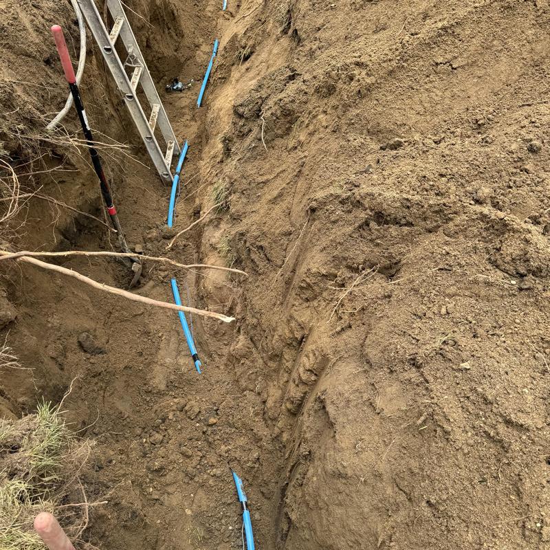Steve's Waterworks Plumbing replaced a failed deep well pump in Novi, Michigan. The team used an excavator to remove the old pump and installed a new poly service line, electrical wiring, and pitless adapter. This restoration fully reactivated the home's water system.