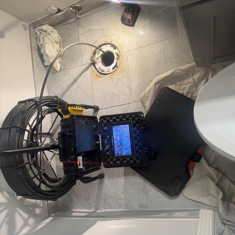 A plumber in Sterling Heights, MI, cleared a clogged main drain by cabling through the cleanout. A sewer camera inspection found a rubber bushing obstructing flow. Using a retriever bit, the plumber removed the bushing, restored proper drainage, and confirmed smooth water flow.