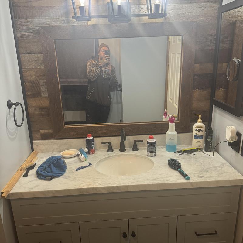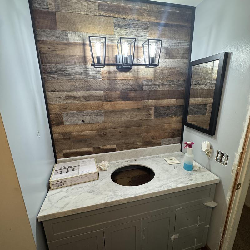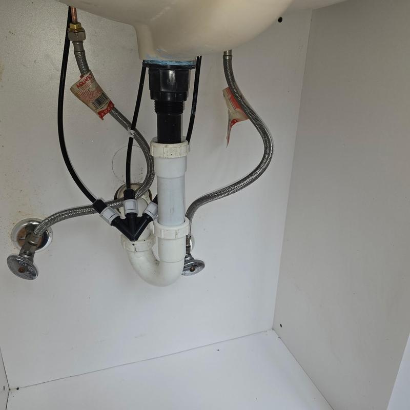 A plumber in Novi, Michigan removed an old bathroom vanity, installed a new one with a sink, added new water lines and valves, and connected a new faucet. The service included plumbing modifications to support the updated fixtures.