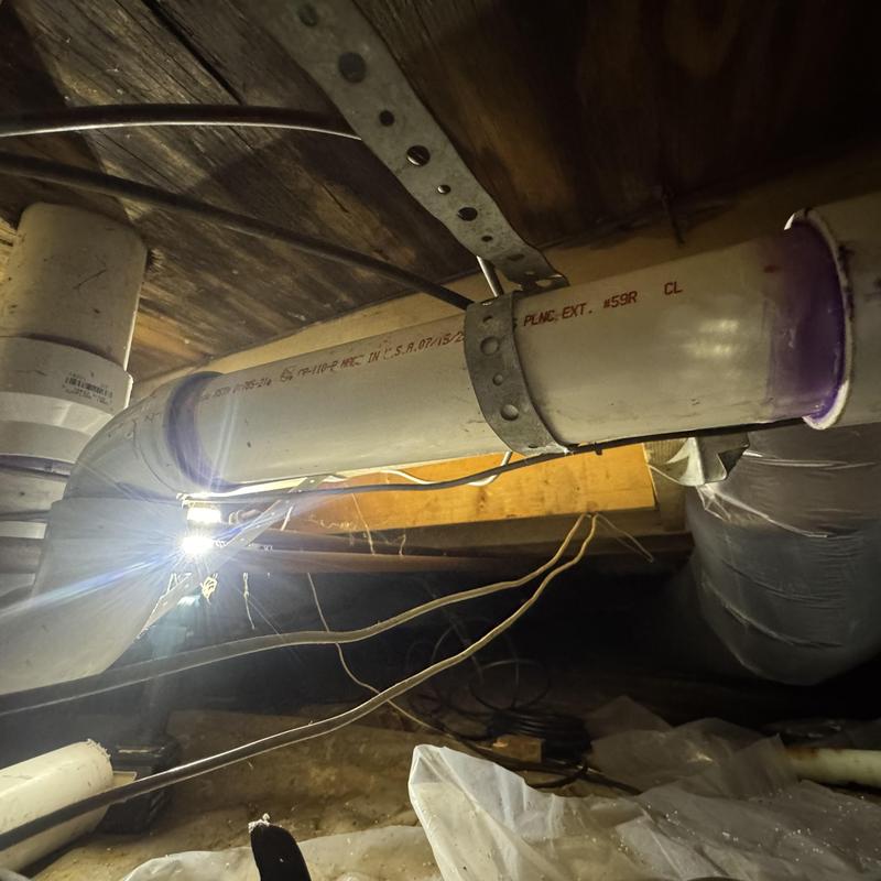 Steve's Waterworks Plumbing replaced a damaged cast iron sewer line in a crawl space in Sterling Heights, MI. The team removed the failing 4-inch cast iron pipe, installed a new 4-inch PVC system, and secured it to prevent sagging. The system was tested to ensure proper drainage and function.