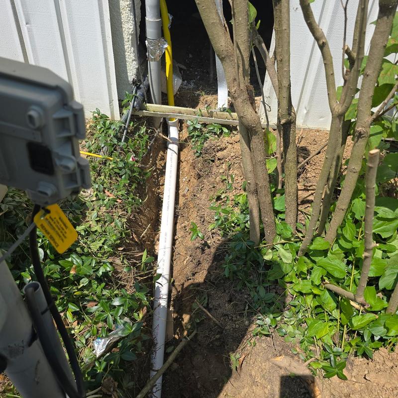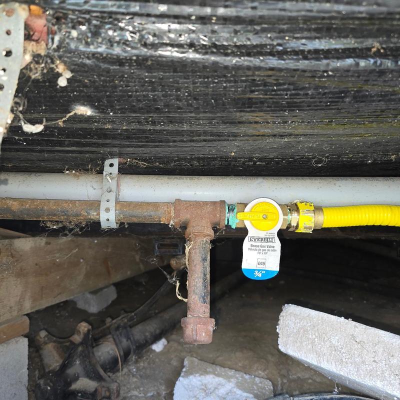 Steve's Waterworks Plumbing installed a new gas line with conduit and reconnected it under a trailer after a tree service damaged the original line. This repair took place in Novi, Michigan.