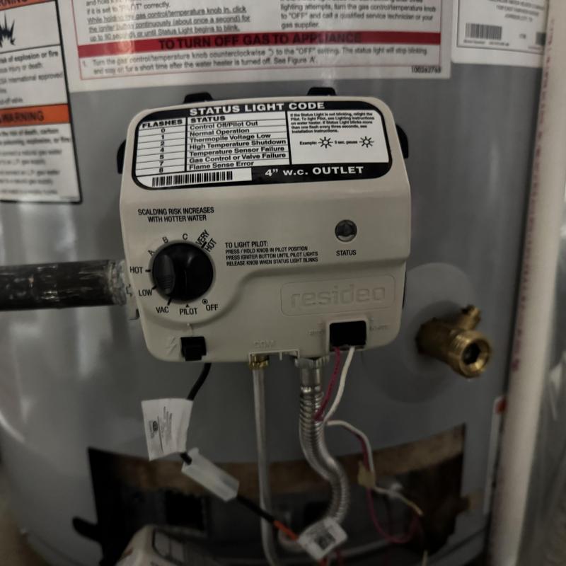 A plumber in Bloomfield Hills, Michigan responded to an emergency service call and replaced a gas control valve on a water heater. This repair restored proper operation and ensured safe gas flow within the appliance.