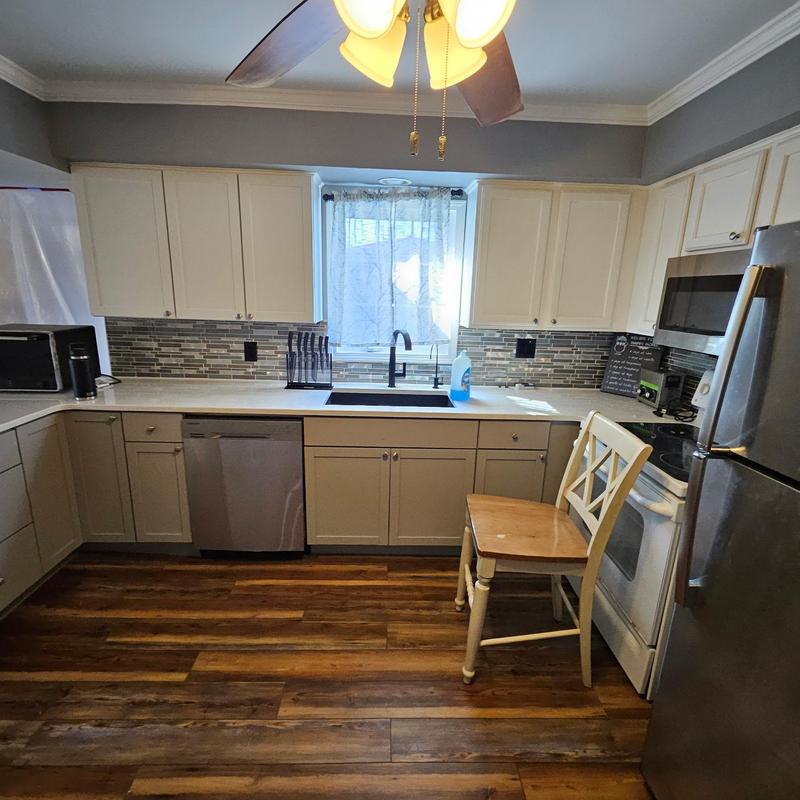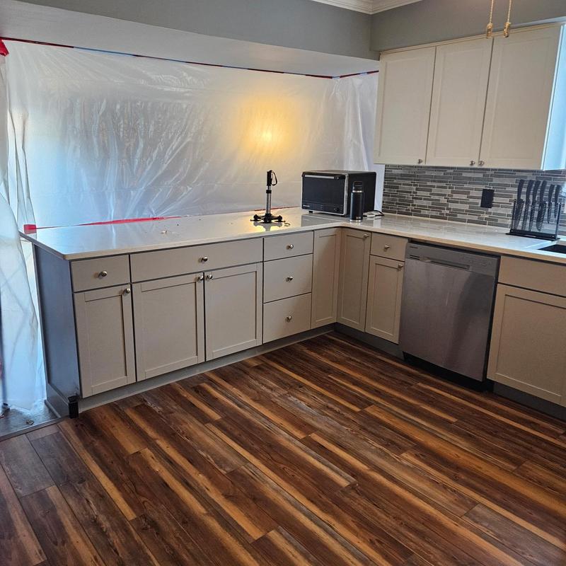 Steve's Waterworks Plumbing completed a kitchen remodel in Clarkston, Michigan. The team replaced underground sewer lines, repaired cement, installed cabinets, drywall, tile, faucets, and a garbage disposal. They also painted walls, installed a new backsplash, and completed all under-cabinet plumbing in a compact space.