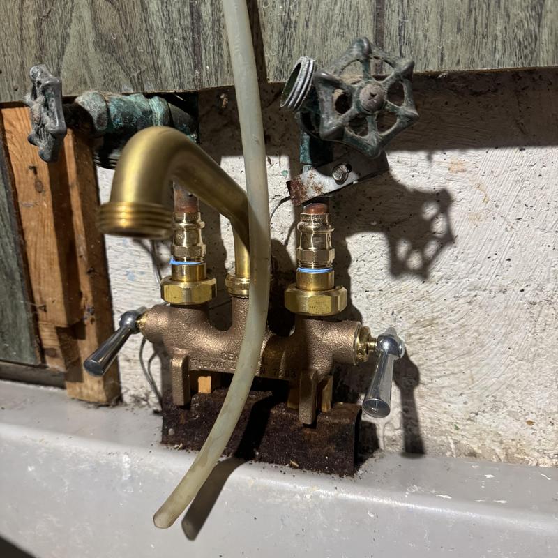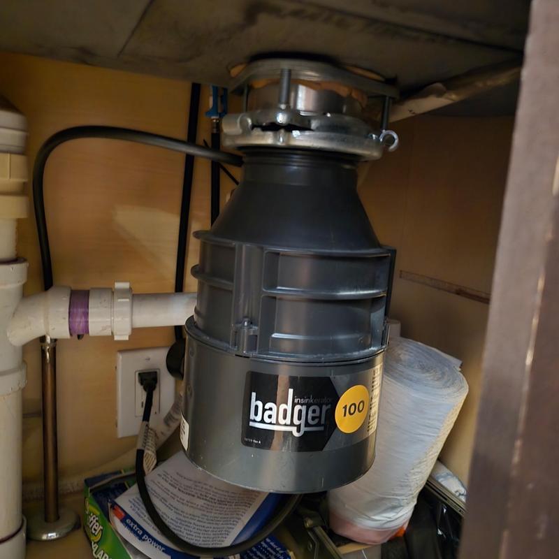 A plumber in Pontiac, Michigan removed a leaking garbage disposal and installed a new 1/2 HP Badger unit. The project also included replacing a 1.5-inch tubular pipe and installing a new Central Brass laundry tub faucet.