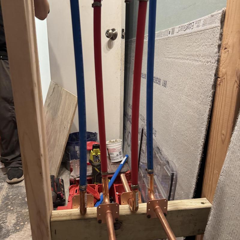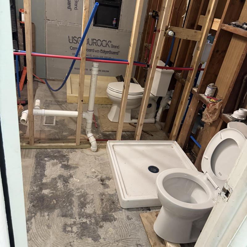 Steve’s Waterworks Plumbing completed a bathroom plumbing installation in Royal Oak, Michigan. The team installed two toilets, a fiberglass shower base, a foam tile shower base, two Delta shower faucets, and rough plumbing for vanities. Each fixture was set to support future countertop and sink installation.
