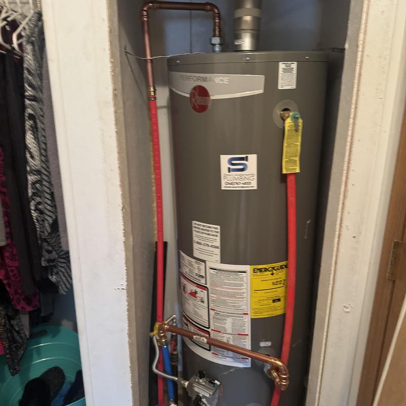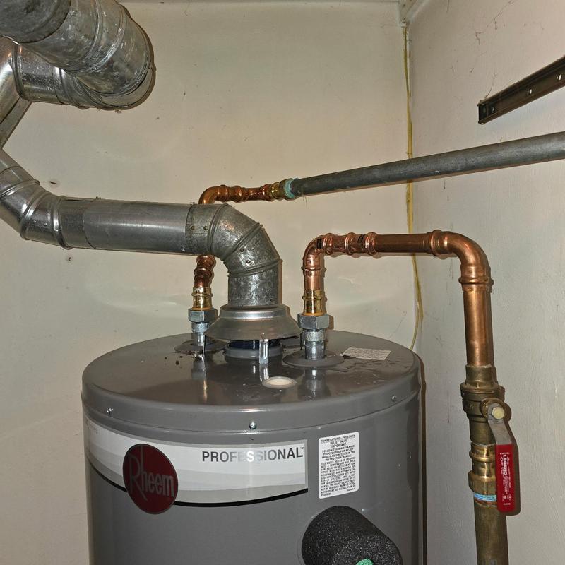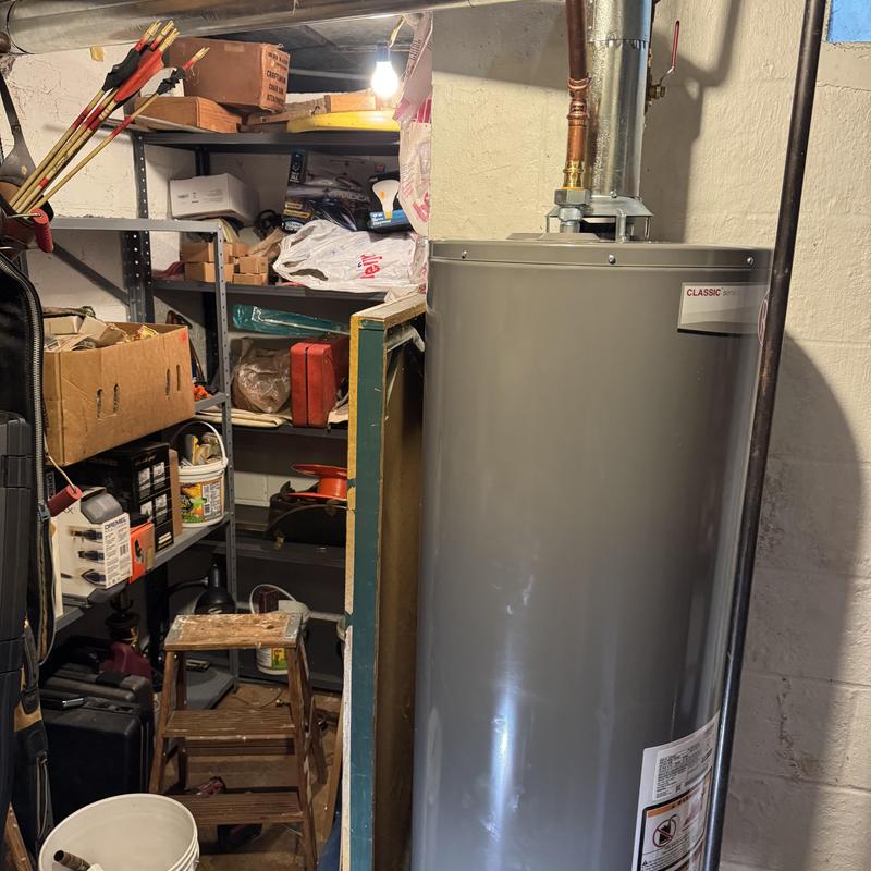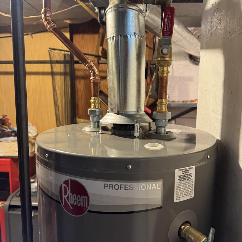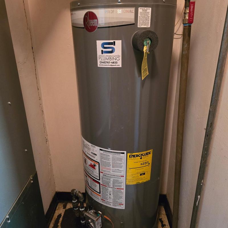 Steve's Waterworks Plumbing replaced a ruptured 40-gallon standard vent water heater that caused water damage and loss of hot water. The team installed a new 40-gallon Rheem standard vent unit. This service took place in Troy, Michigan.