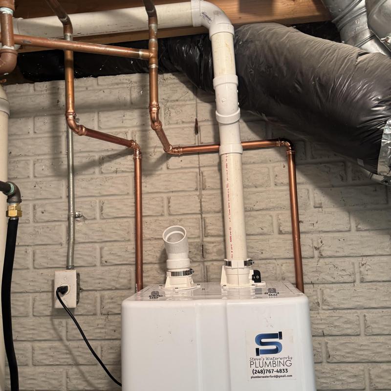 Steve's Waterworks Plumbing removed an old water heater and installed a tankless water heater in Clarkston, Michigan. This upgrade supports continuous hot water while reducing energy usage and saving space.