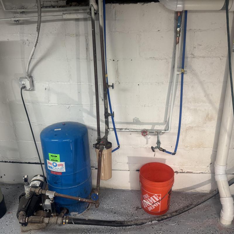A plumber in Milford, Michigan replaced a bladder tank and 10 feet of 3/4-inch copper pipe. The replacement resolved low water pressure caused by iron buildup in the old piping system.