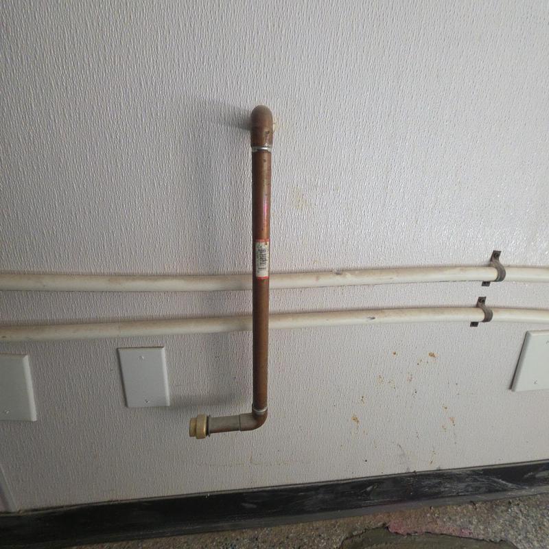 A plumber in Auburn Hills, Michigan installed a 12-inch copper pipe from the basement through the floor to the new refrigerator location. The plumber also installed a valve at the floor connection point.