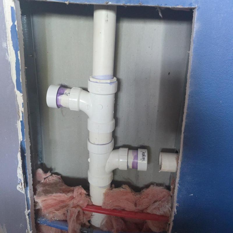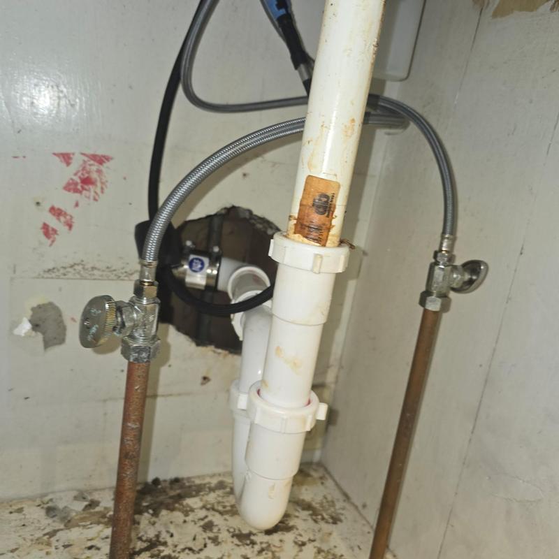 A plumbing technician in Sterling Heights, Michigan, completed underground setup for a wall-hung sink and ventilation system. The work included preparing piping connections and ensuring proper airflow routes to support the sink installation.
