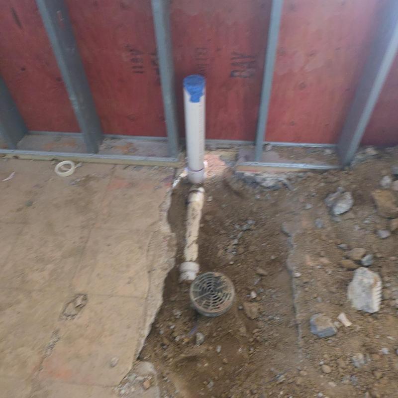 Steve's Waterworks Plumbing completed underground setup and rough-in installation for a mop sink in Bloomfield Hills, Michigan. The work included placing plumbing lines below the surface and preparing connections for future sink installation.