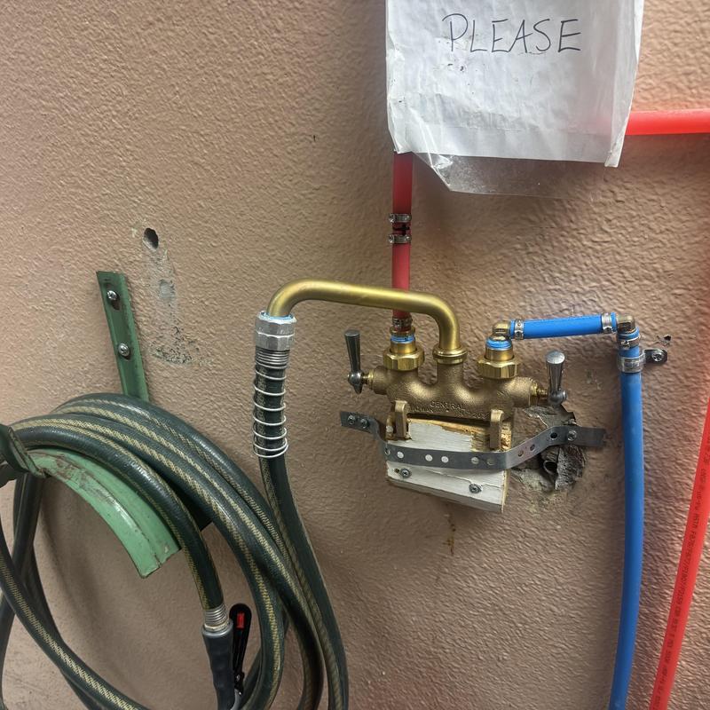 Steve's Waterworks Plumbing replaced a leaking utility faucet at Bansfield Vet Pet Hospital in Waterford, Michigan. The original faucet had damaged threads at the hose connection, causing water leakage. The new installation restored proper function and resolved the issue.