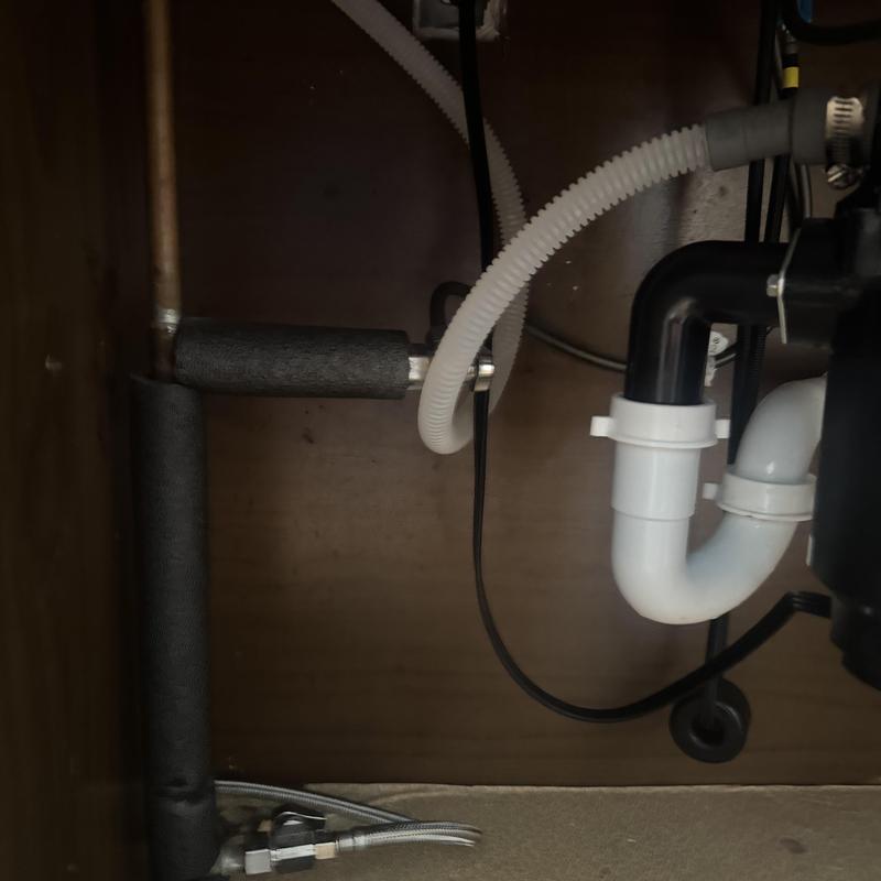 A plumber in Bloomfield Hills, Michigan installed a braided supply line and a shutoff valve for an ice maker. This setup helps connect the appliance to the water supply while allowing easy control of water flow for maintenance or emergencies.
