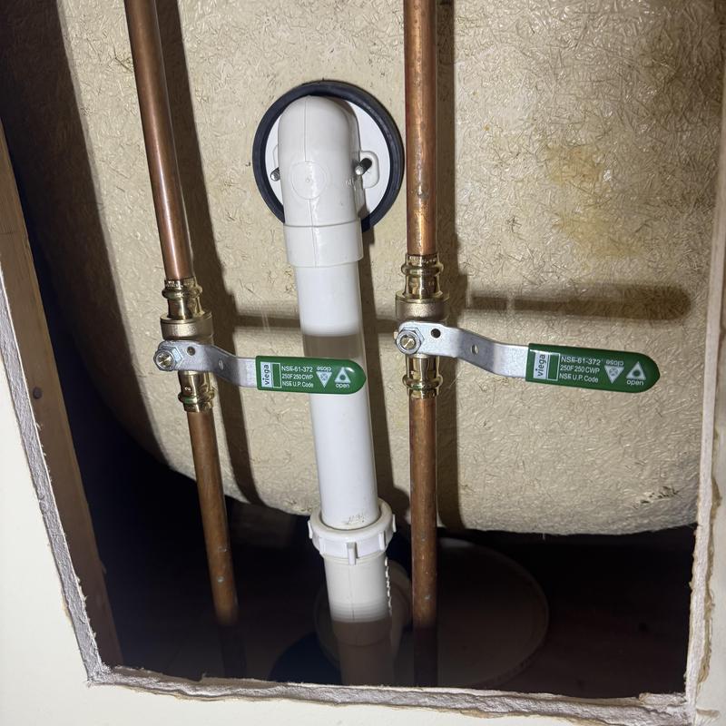 A plumber installed two 1/2-inch ball valves for a shower in Waterford Township, Michigan. This plumbing service ensured proper water control for the shower system by replacing or adding functional shut-off valves.