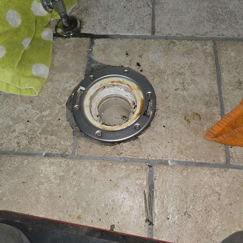 A plumber in Rochester, Michigan replaced a cracked closet flange that caused a toilet to rock and leak. The service included installing a new repair flange, setting the toilet with a new wax ring, securing new bolts, and connecting a new supply line.