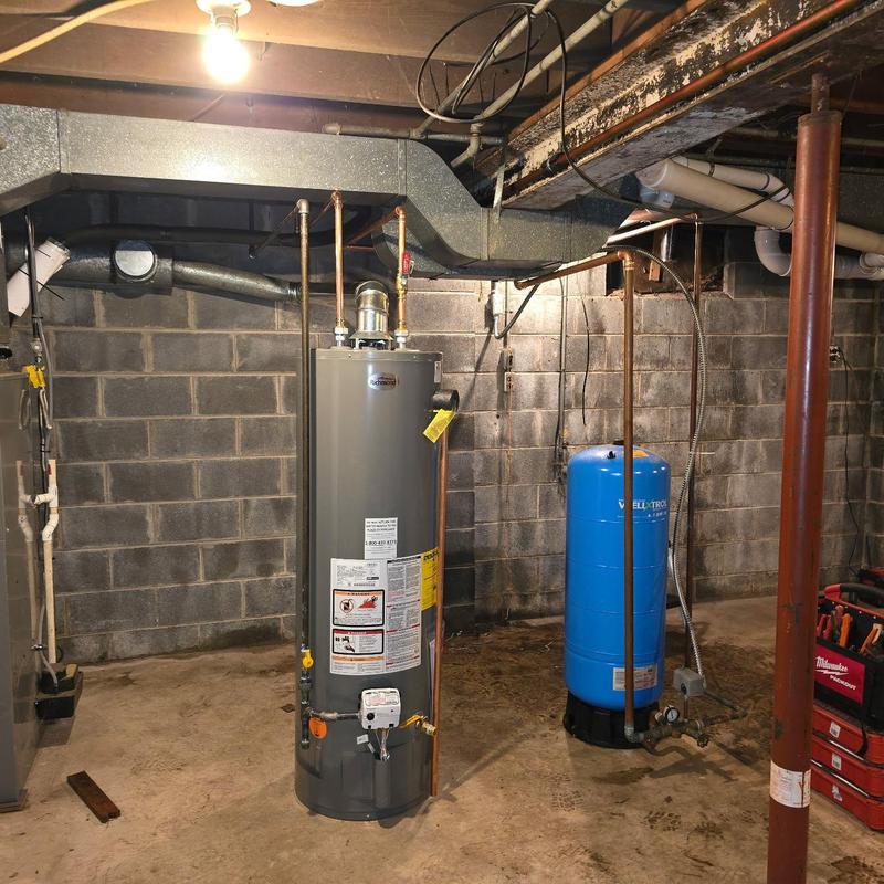 A plumber in Commerce, MI moved a well bladder, installed a new water heater, and added a gas line for a gas stove. The work included running gas and flue pipes for the water heater and installing new water lines for the bladder and heater.