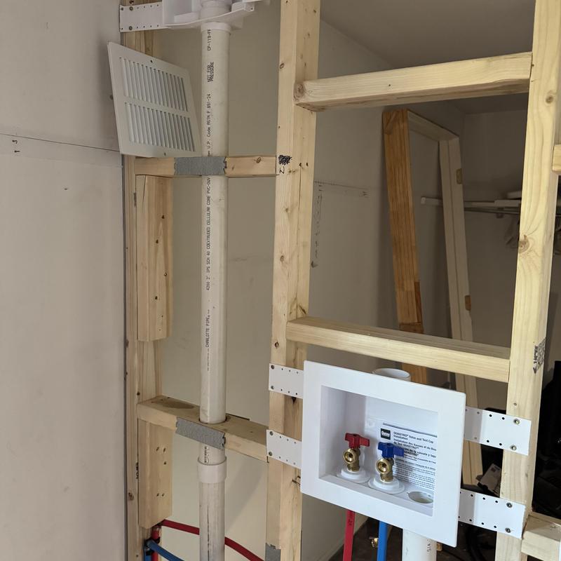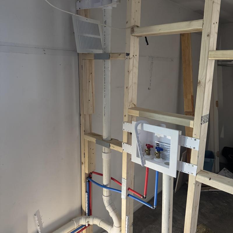 In Waterford Township, MI, STEVE'S WATERWORKS PLUMBING installed a 2-inch PVC drain pipe and PEX hot and cold lines to a second-floor washer box. The project included a laundry box and Studor vent to ensure proper drainage airflow, reducing clog risks and supporting efficient laundry system maintenance.