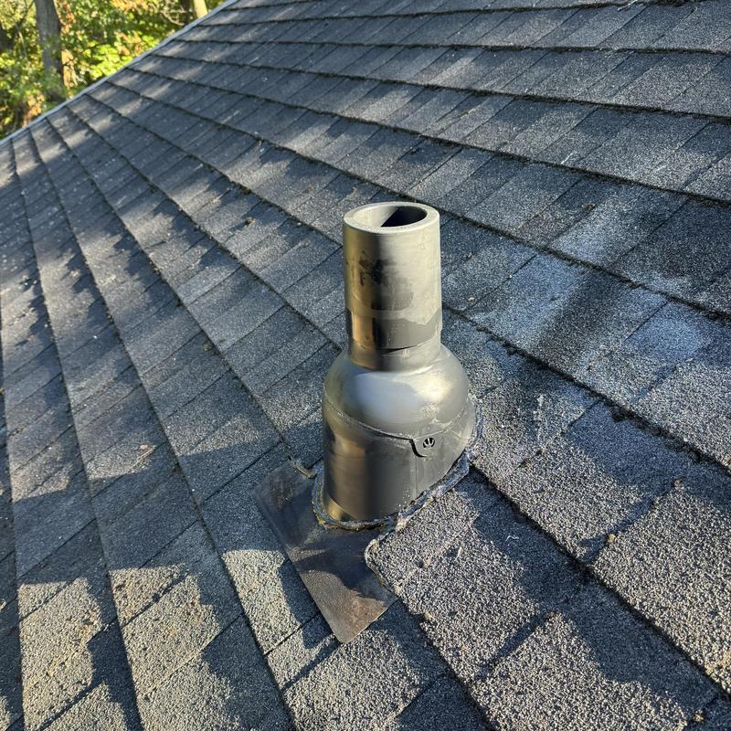 Steve's Waterworks Plumbing responded to an emergency roof leak at the vent stack in Commerce Township, Michigan. The team installed a Perma-Boot to stop water intrusion and protect the roof structure.