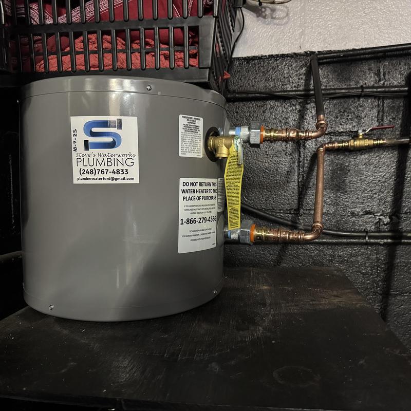 Steve's Waterworks Plumbing installed a 50-gallon electric water heater in Clarkston, Michigan. This service ensures consistent hot water supply for residential use. The installation followed proper safety standards and replaced older or inefficient equipment to improve system performance.