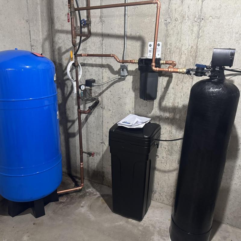Steve's Waterworks Plumbing installed a customer-provided softener and iron filter combo, a house filter, and an 82-gallon bladder tank in Milford, Michigan. The work improved water treatment and storage for the home.